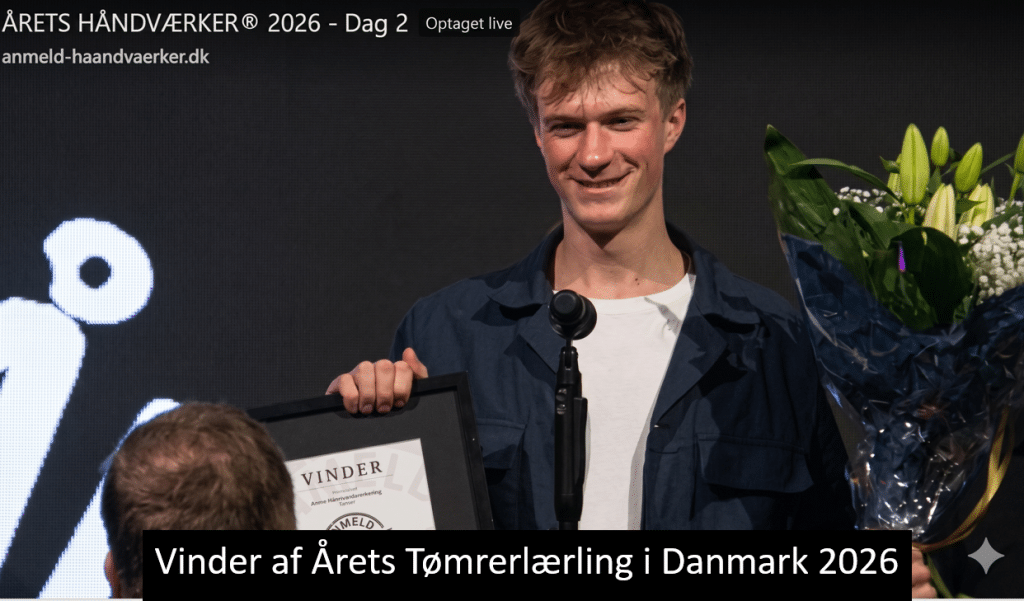 Vi brister af stolthed hos 3-Byg. I går aftes i en fyldt Cirkusbygning skete det vildeste: Vores egen Mathias Clausen vandt titlen som Årets Tømrerlærling 2026 ved anmeld-haandvaerker.dk. Det har været en imponerende rejse at følge. Mathias startede hos os som praktikant, fik efterfølgende en lærekontrakt, og nu står han øverst på skamlen som landets …